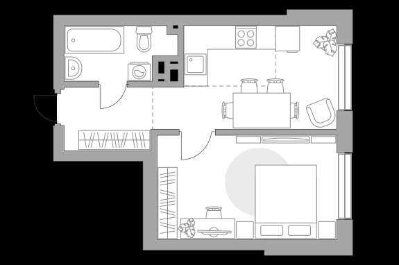 Жилая площадь 24.6 м2, кухня 4.5 м2. Площадь комнат: 9.50/15.10 м2, квартира без отделки, окна выходят во двор.
