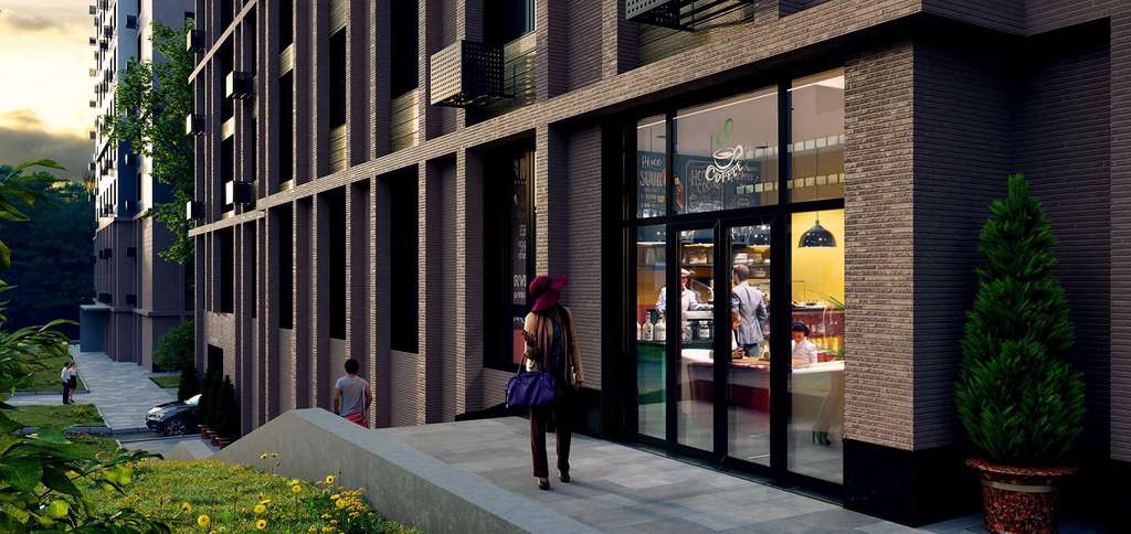 Архитекторы разработали концепцию, которая позволяет гармонично вписать проект в его природное окружение, используя оттенки белого, коричневого, терракотового цветов. Монолитные дома спроектированы с качественными фиброцементными фасадами. Просторные лоджии и панорамное остекление наполняют квартиры светом и воздухом и позволяют любоваться пейзажами.