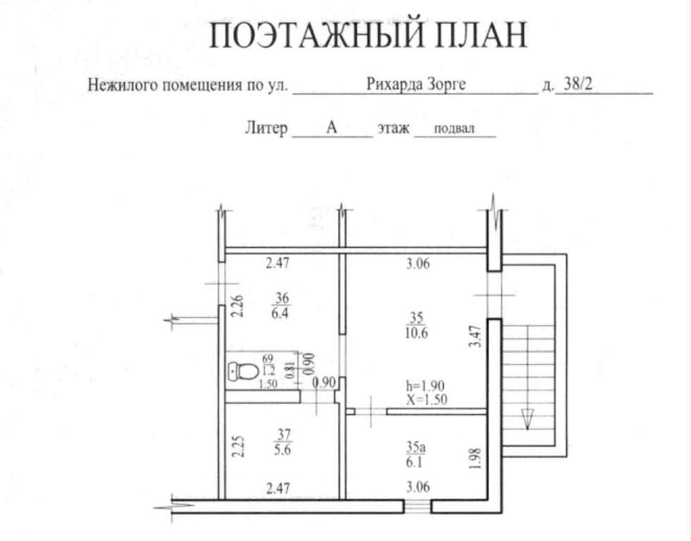 Нежилые помещения подвала пятиэтажного жилого здания. Кадастровый номер 02: 55: 020107: 5979. Площадь объекта 29,9 кв. м. Этажность-подвал / 5. Обременения (ограничения) не зарегистрировано. Муниципальная собственность. Запись в Едином государственном реестре прав на недвижимость № 02-04-01/055/2007-556 от 20.03.2007г. Техническое состояние: год постройки: 1965; материал стен: крупнопанельные; высота помещений: 1,90м. ; наличие коммуникаций: центральное отопление, электроснабжение, водоснабжение, канализация. В Объекте имеются общедомовые коммуникации. Покупатель обязан обеспечивать свободный доступ соответствующим службам в целях ремонта коммунальных, инженерных, электрических, других линий и сетей. Адрес: Республика Башкортостан, г. Уфа, Советский район, ул. Рихарда Зорге, 38/