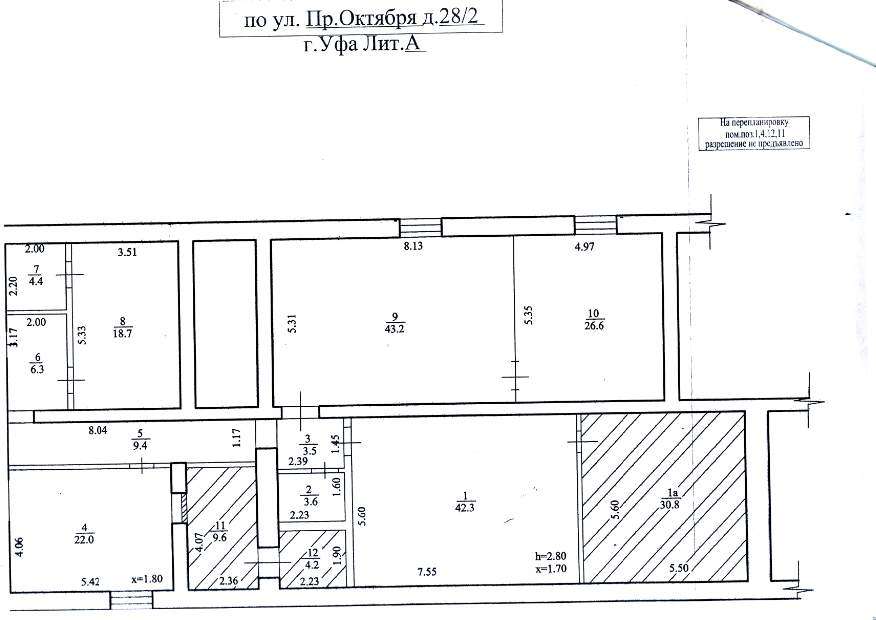 Объект муниципального нежилого фонда - нежилое помещение подвала пятиэтажного жилого здания (кадастровый номер 02: 55: 000000: 9984) , расположенного по адресу: Республика Башкортостан, г. Уфа, Советский район, ул. проспект Октября, 28/2. Площадь объекта - 30,8 кв. м. Муниципальная собственность. Запись в Едином государственном реестре прав на недвижимость № 02-04-01/159/2011-045 от 29.04.2011г. Прочие характеристики, техническое состояние: год постройки: 1965, материал стен: кирпич, высота помещений: 2,80м, наличие коммуникаций: центральное отопление, водоснабжение, электроснабжение. Вход в Объект через стороннего собственника.