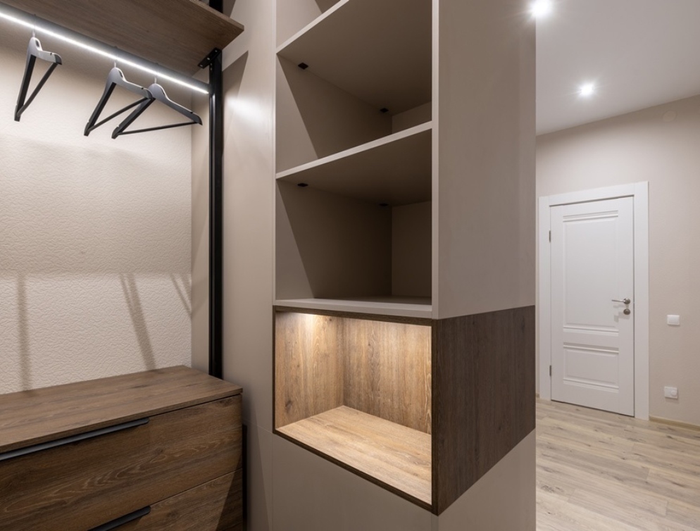 «Выбор студии в качестве шоу-рума был неслучайным. Во-первых, квартиры этого формата еще есть в продаже, а во-вторых, из общения с клиентами мы сделали вывод, что многие воспринимают студии как некое временное жилище, не приспособленное для полноценного проживания. Как раз эти опасения мы и постарались развеять. Посмотрите на фотографии. В 18-метровом жилом помещении разместилась полноценная кухня со всем оборудованием (включая посудомоечную машину), спальное место – большая кровать с подъемным механизмом (дополнительное место хранения не помешает) плюс уютный диванчик, на котором может ночевать еще один член семьи или разместиться припозднившийся гость. А в небольшой прихожей удалось организовать полноценную, эргономичную и в то же время вместительную гардеробную», – делится Анастасия Жаркова.