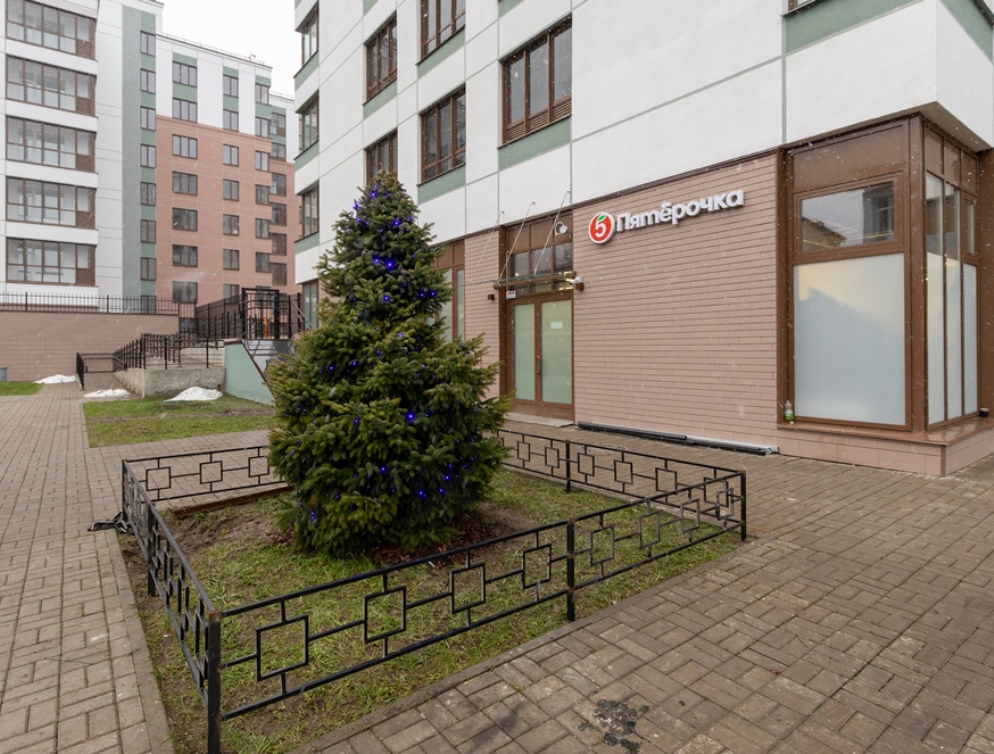 Первые этажи отданы под коммерцию. Так, совсем скоро откроются сетевой продуктовый магазин и пункт выдачи интернет-заказов. Часть помещений находится в продаже и отлично подходит под размещение аптеки, кофейни или салона красоты.