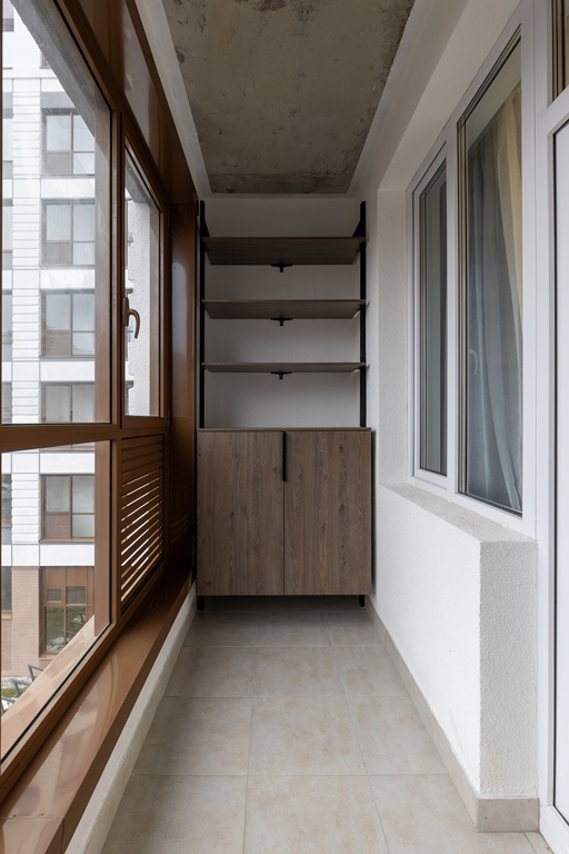 По фотографиям также видно, что просторный санузел позволил без труда разместить стиральную машинку. А застекленную лоджию можно использовать и как место для хранения хозяйственных мелочей на удобном стеллаже, и как зону отдыха – к этому располагает симпатичное кресло-гамак. Таким образом, девелопер показал, что даже на компактной площади можно организовать стильное и современное жилище!