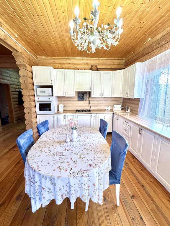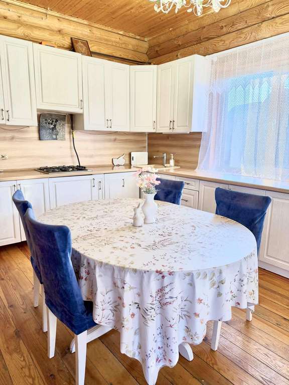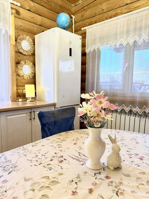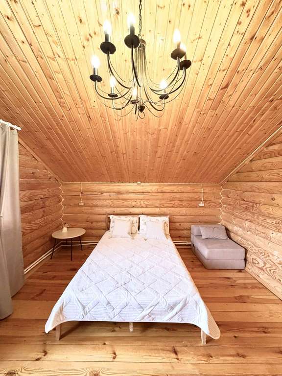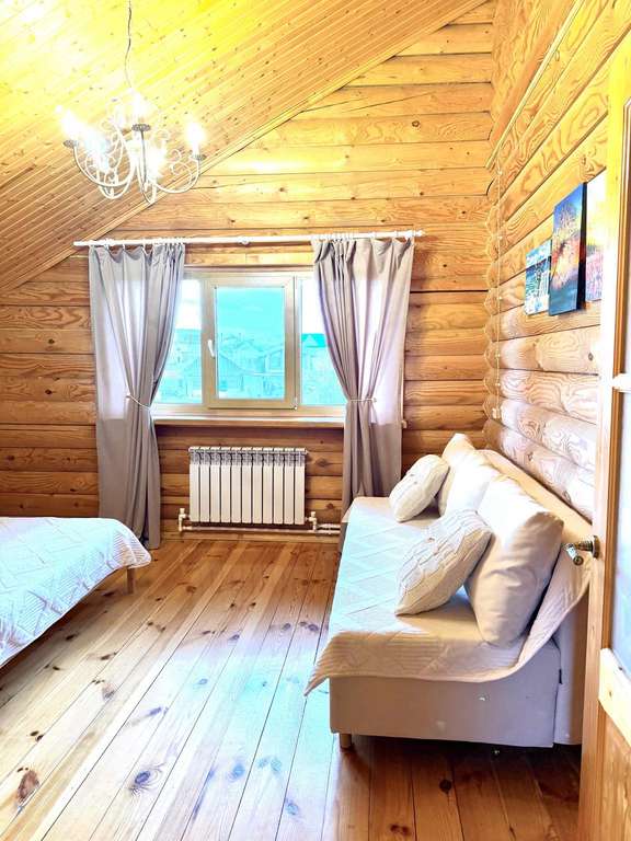 Дом большой : 3 спальни, в каждой двухместная кровать, плюс большой диван в гостиной и диван в спальне (10 спальных мест) , 2 санузла, красивая гостиная! Есть мангал с отделением для казана. Баня классная! (4000 за весь вечер, топите сами) . Чан (6000 сами наполняете и топите) . Чан функционирует только в плюсовой температуре.